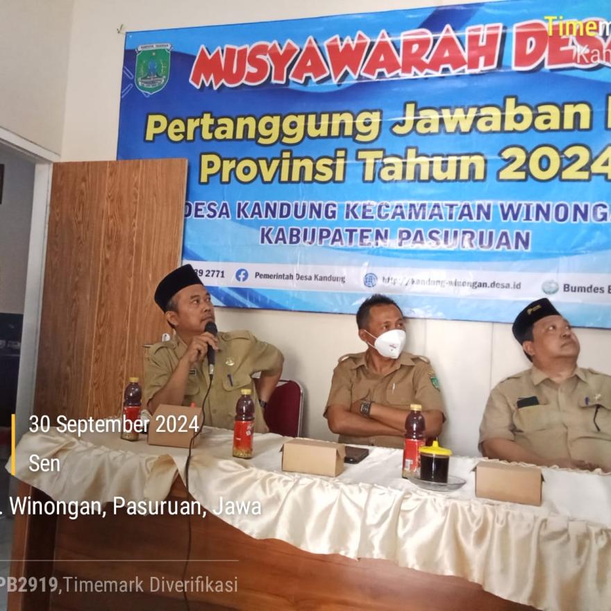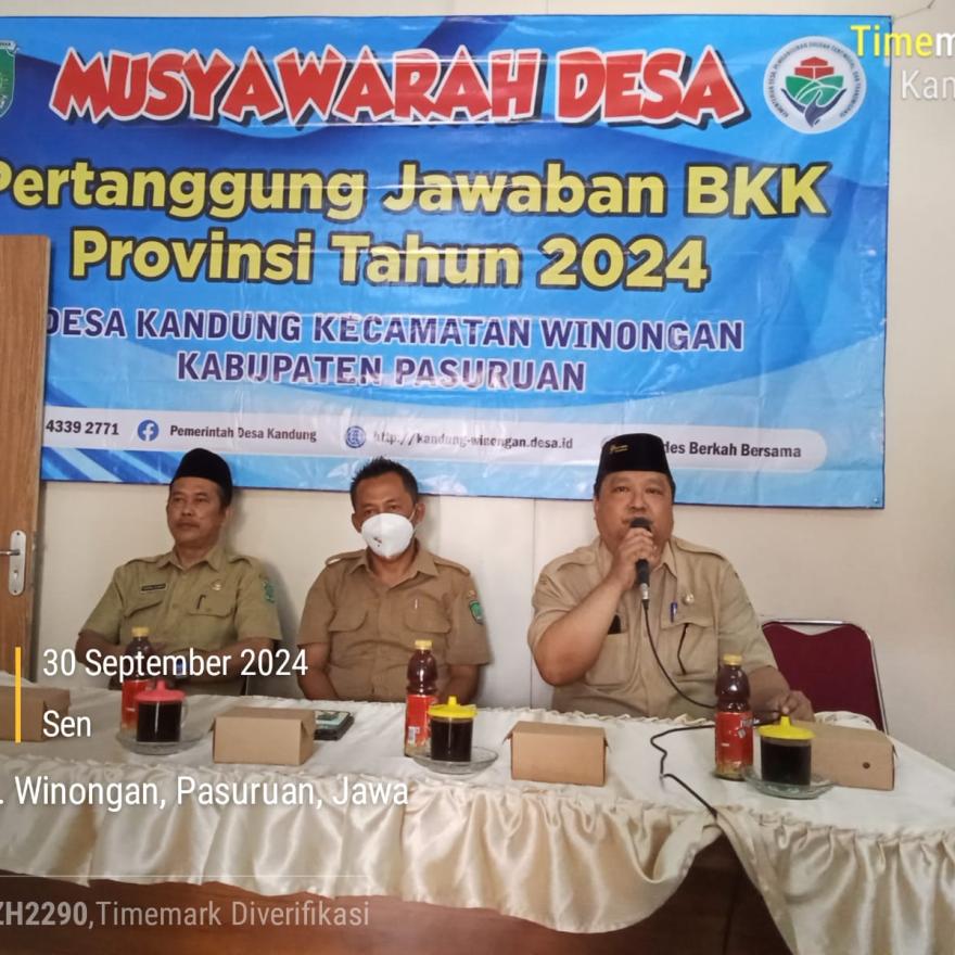 Kegiatan ini dihadiri oleh BPD, Pemerintah Desa, DPMD yang diwakili oleh (Bapak Joni Supriyadi SE.MM, Bapak Chairil Ichwan SE.MM, Ibu Dita Anggraini) serta unsur masyarakat desa untuk membahas pertanggungjawaban BKK Provinsi Jawa Timur tahun2024. Progam pemberdayaan BUMDesa yang ada di desa Kandung ini merupakan salah satu penerima BKK Provinsi tahun 2024 dari 7 desa penerima BKK Provinsi Jawa Timur seKabupaten Pasuruan. Untuk mewujudkan rencana kegiatan yang telah ditetapkan diantaranya berupa mesin fotocopy, komputer (pc), printer beserta aksesorisnya, alat pemotong kertas, alat laminating dan plastik laminatingnya, atk dan sebagainya. Hal ini untuk mengembangkan usahanya supaya usahanya lebih lancar dan meningkat. Setelah mengikuti kegiatan ini peserta menjadi semangat.