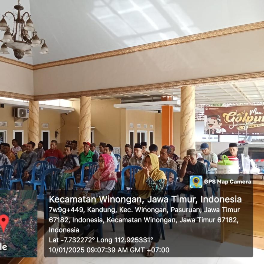 Kegiatan Musyawarah Perubahan Pengurus GAPOKTAN (Gabungan Kelompok Tani) dilaksanakan pada hari Jum’at, 10 Januari 2025 di Balai Desa Kandung yang dihadiri oleh Ibu Dewi Anifa dan Ibu Siti Nur Hidayah selaku PPL dari Kecamatan Winongan, Bapak Adif Luthfi Mubarok S.Pt selaku Kepala Desa Kandung beserta Perangkat Desa Kandung, Bapak Iswahyudi selaku Ketua Gapoktan Tani Makmur, Bapak Kabul selaku Bendahara Gapoktan Tani Makmur, Bapak Lukmanul Khakim selaku Sekretaris Gapoktan Tani Makmur dan Ketua Kelompok Tani (Jaya 1, Jaya 2, dan Jaya Makmur) beserta Anggota Petani Kelompok Tani Jaya 1, Jaya 2, dan Jaya Makmur. Musyawarah Perubahan Pengurus GAPOKTAN (Gabungan Kelompok Tani) dimulai pukul 08:30 WIB sampai selesai.
